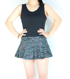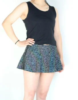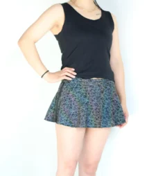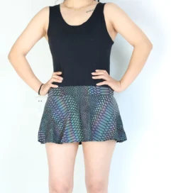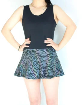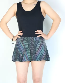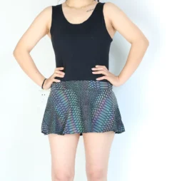 Reflective outfits have been quickly gaining popularity on the dance music scene. Seen on every dance floor by the time the sun sets on a days festivities, the night time is the time for these spectacular fashion statements to shine. Made from a polyester spandex blend fabric and printed wth carefully thought out reflective designs. These skirts are an awesome start to plan an outfit around. Highly reflective, you’ll be sure to get noticed on the dance floor with these on. Choose between the Mushroom, Rainbow Snakeskin, Rainbow Lattice and Rainbow Zebra designs to find one that tells the story you want to tell.