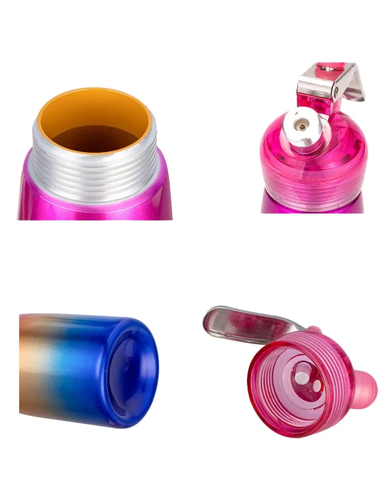 - Vibrant Rainbow Finish: Stand out with a durable aluminium body featuring a sick pink-to-blue gradient and a translucent pink top.