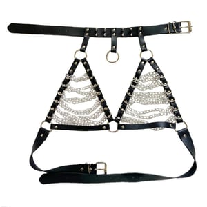 Let your inner rebel out to rave with the Ravers Co Chain Leather Strap Brat . This audacious piece, designed for the bold and the fearless, is the perfect accessory for your next rave or festival. Crafted from supple leather and robust chains, this bra is not just a statement, but a testament to your individuality.