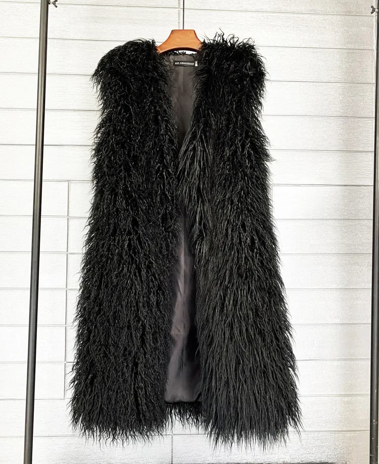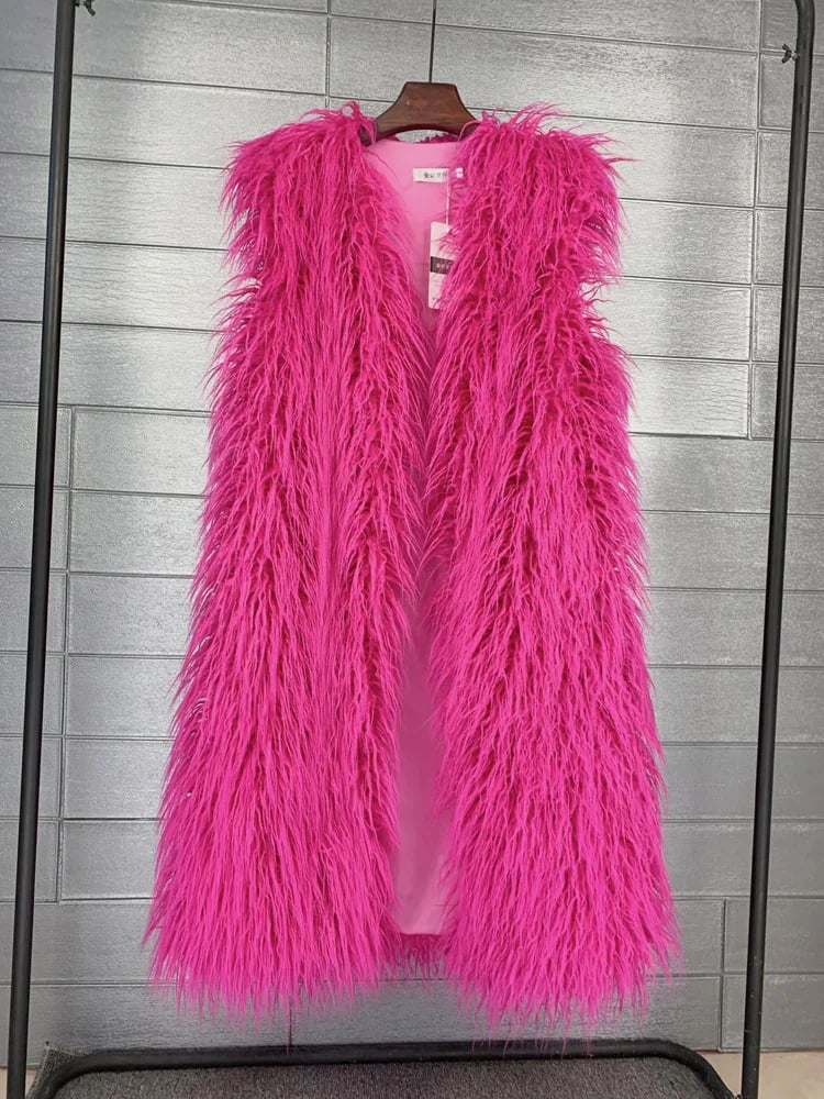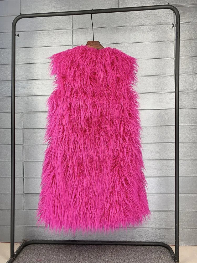 Been saving up for this and it totally lived up to the hype! The Pink luxe faux fur is stunning, exactly that shaggy Mongolian wool look I wanted without any harm. The statement silhouette with the longline, sleeveless, open-front design is just epic. Wore it to a big festival in Germany and felt incredible. It really does keep the vibes high and the cold out when the sun disappears. Delivery took about 12 days to get here but worth the wait for sure!