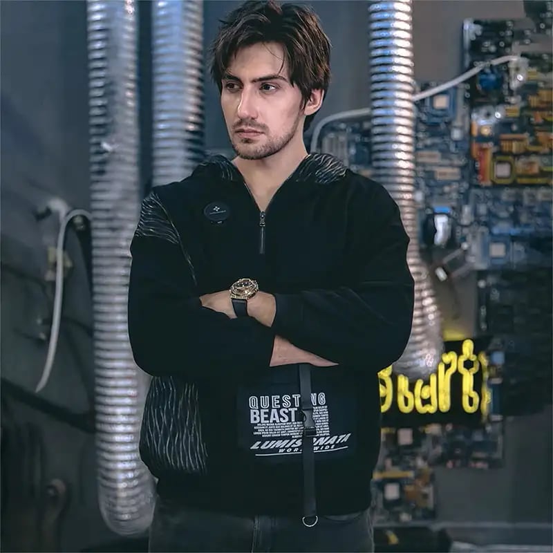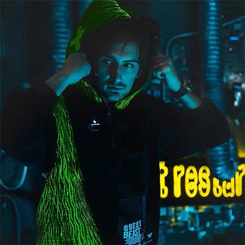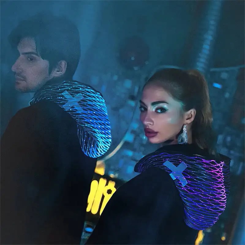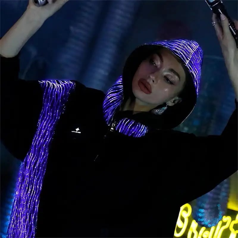 - Unforgettable Design: Premium fiber optic fabric covers the entire hood and frames the central zipper, creating a jaw-dropping visual from every angle. Available in black or white.