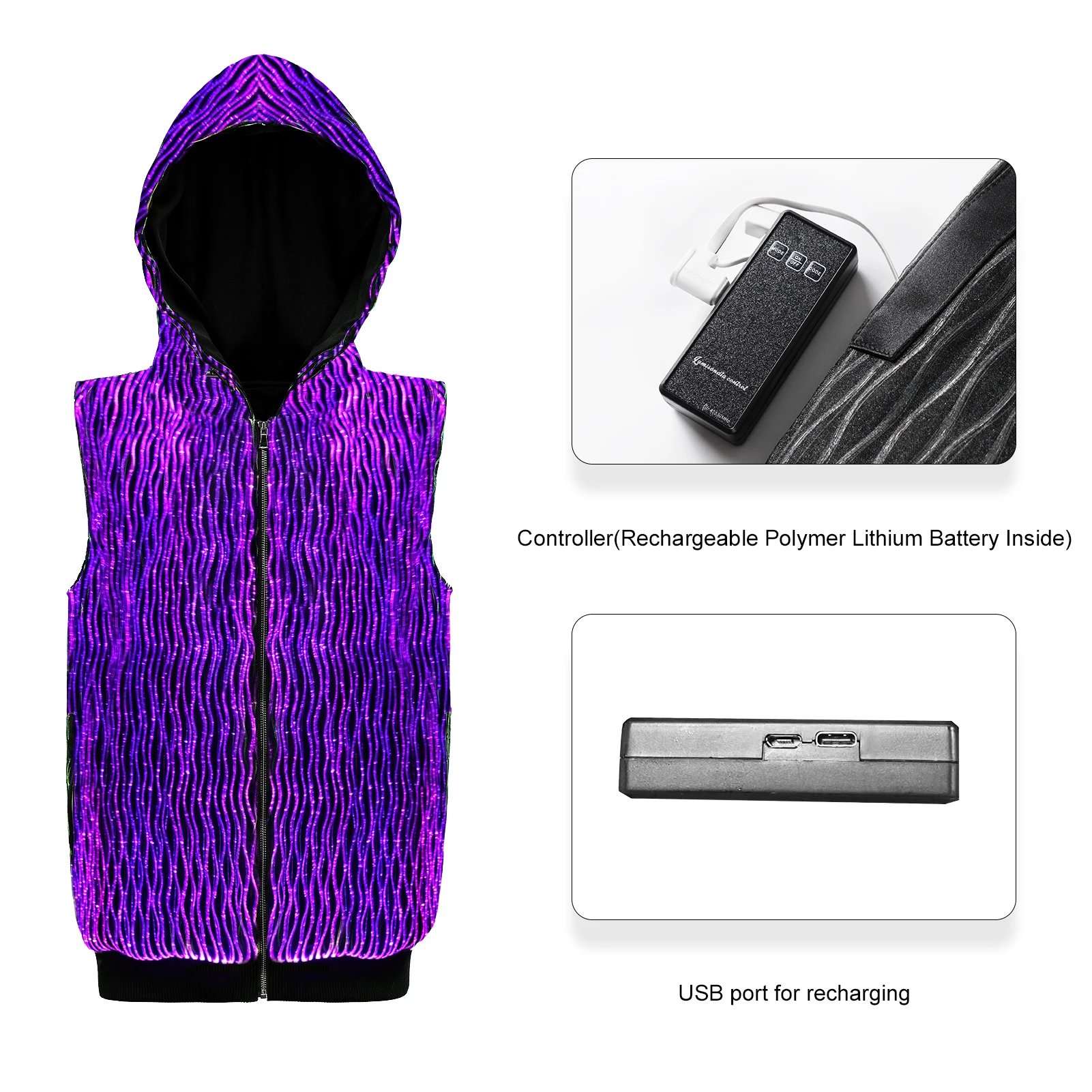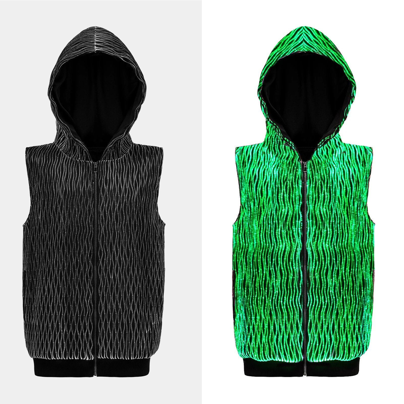 - Sizes are just a guide – this Fibre Optic Sleeveless Hoodie is custom made to fit you perfectly!