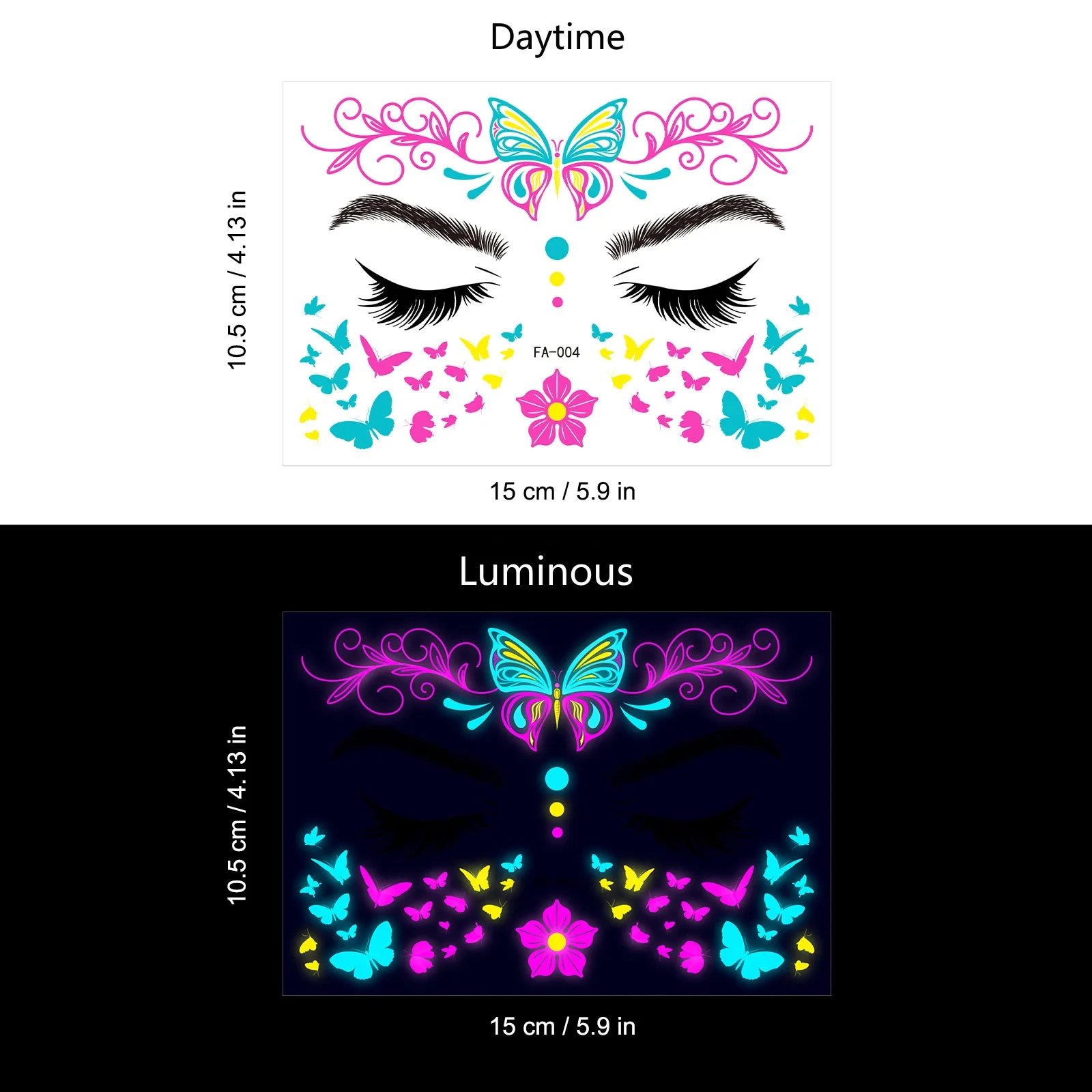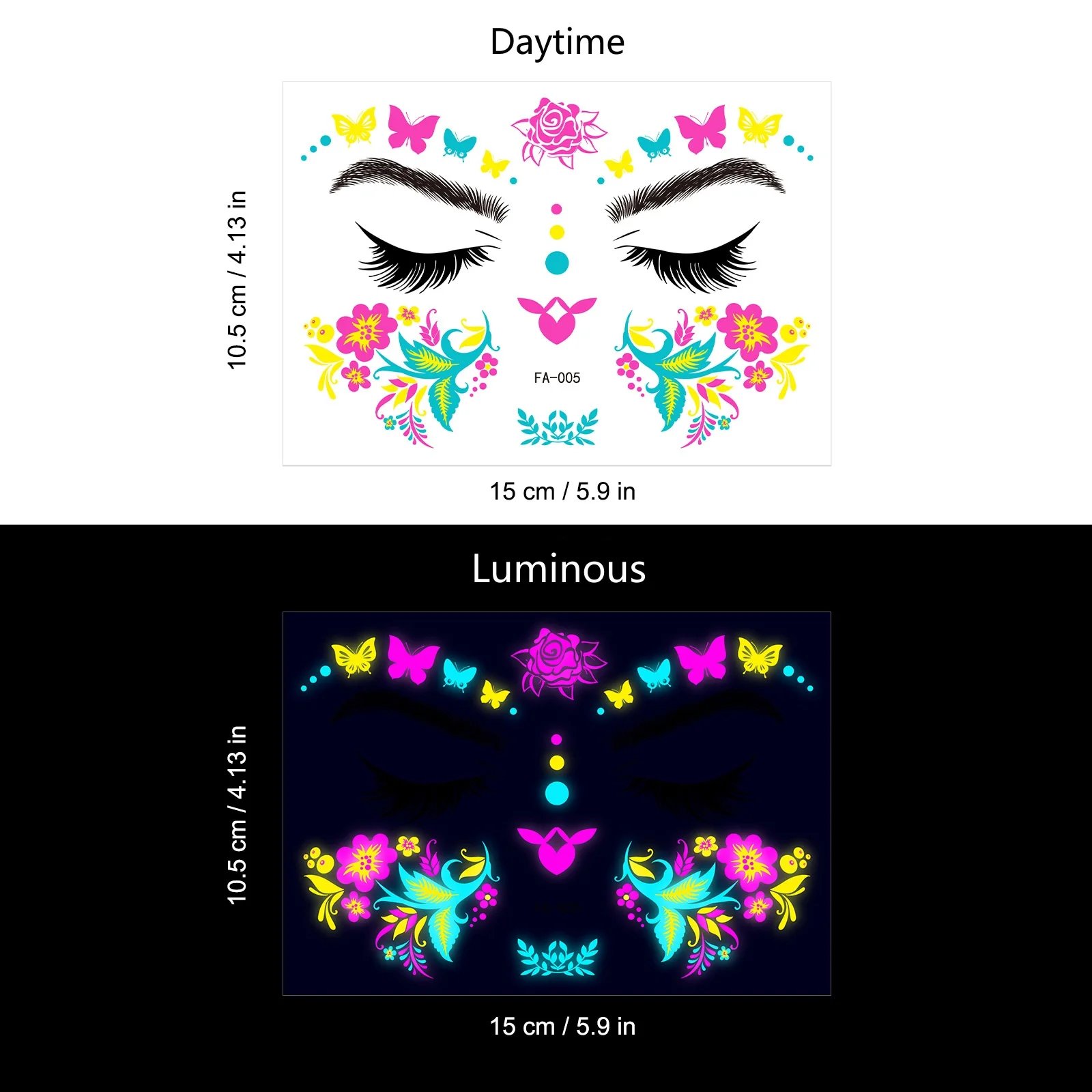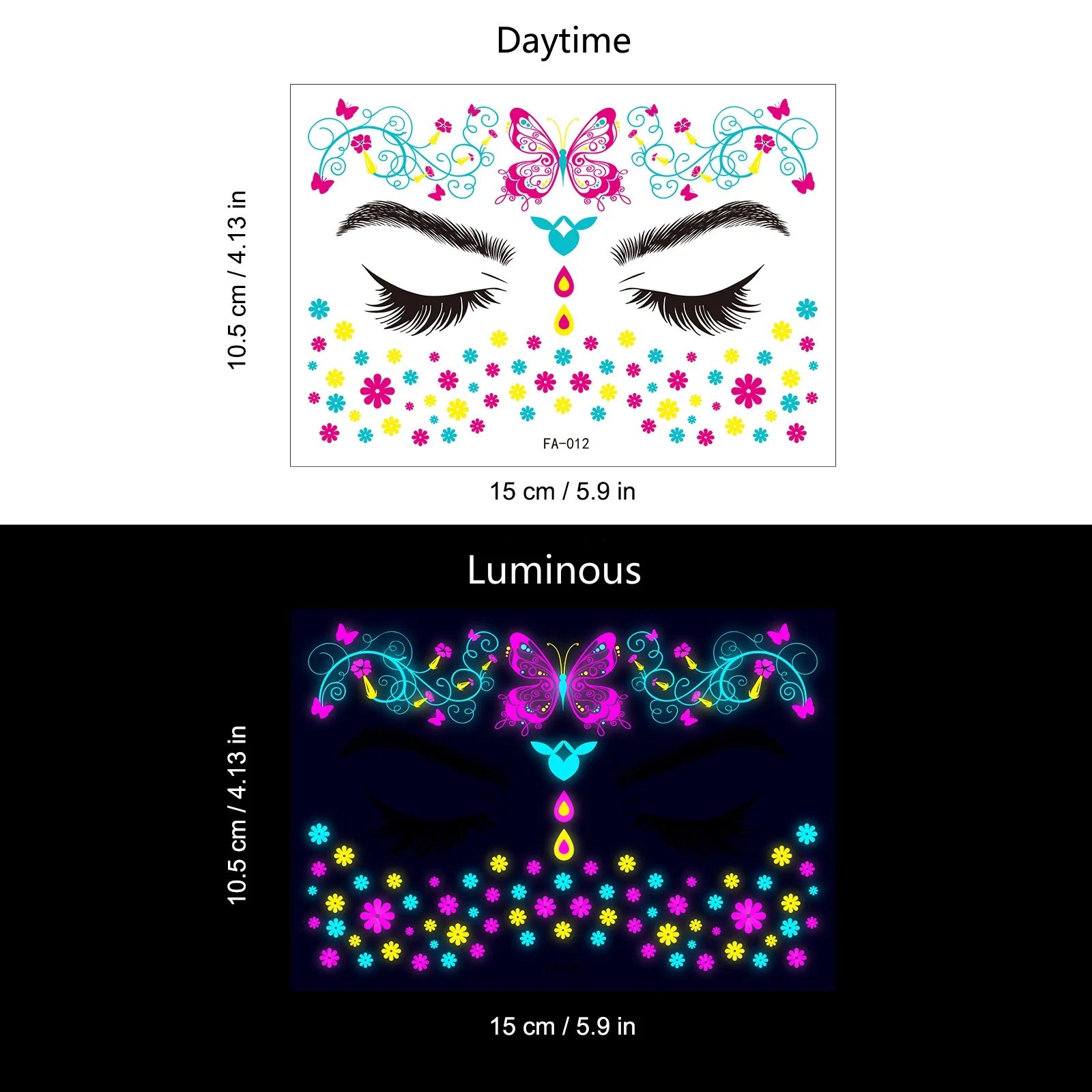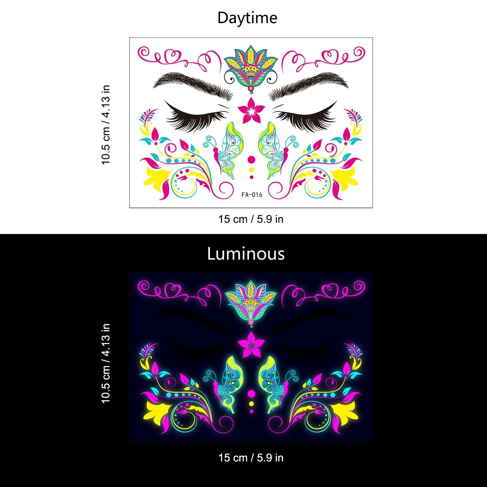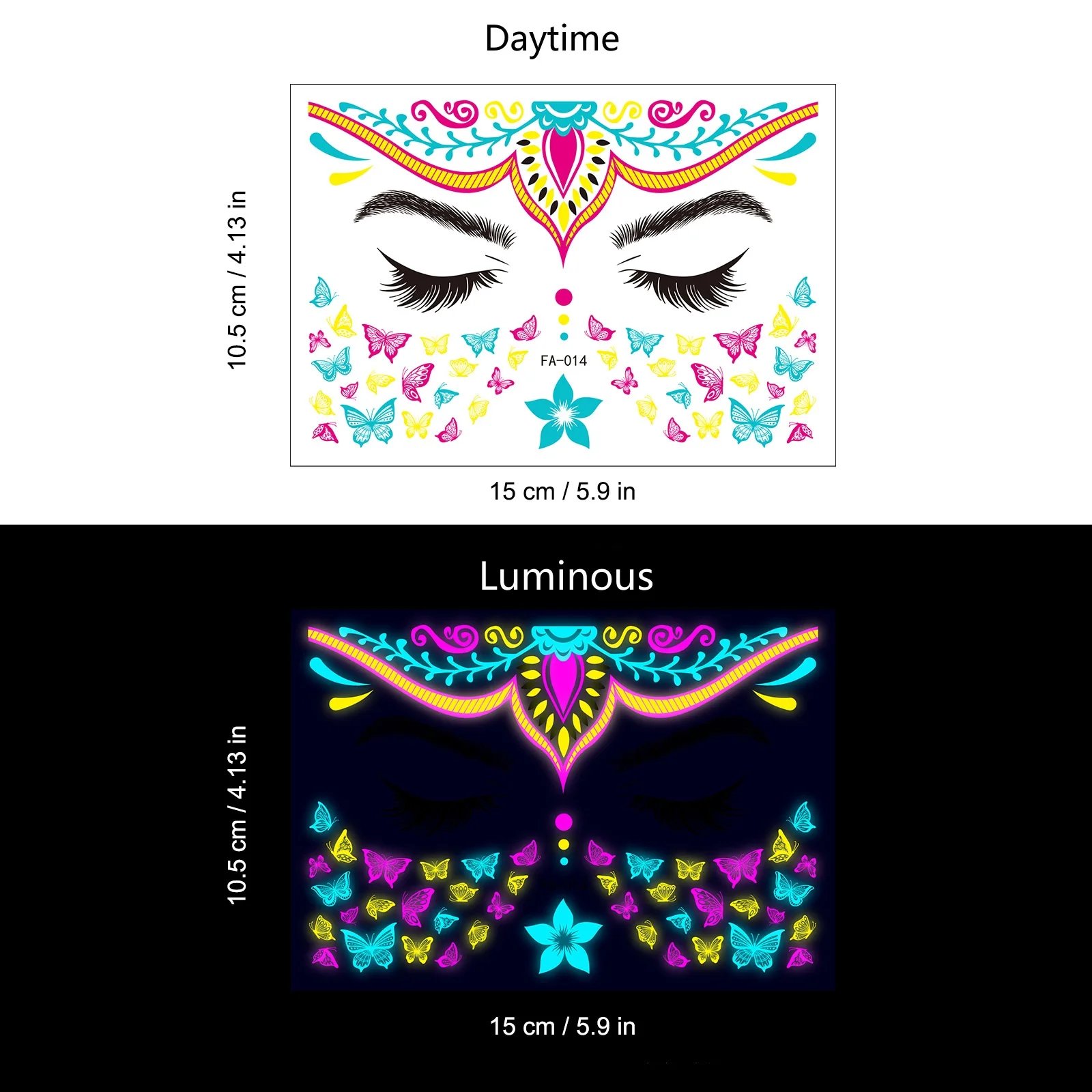 These neon temporary tattoos not only come in bright colours but also glow under UV light. This adds an extra element of fun, face temporary tattoos perfect for music parties, carnivals, Halloween events, bars, clubs, weddings, dances, and other occasions with UV lighting.