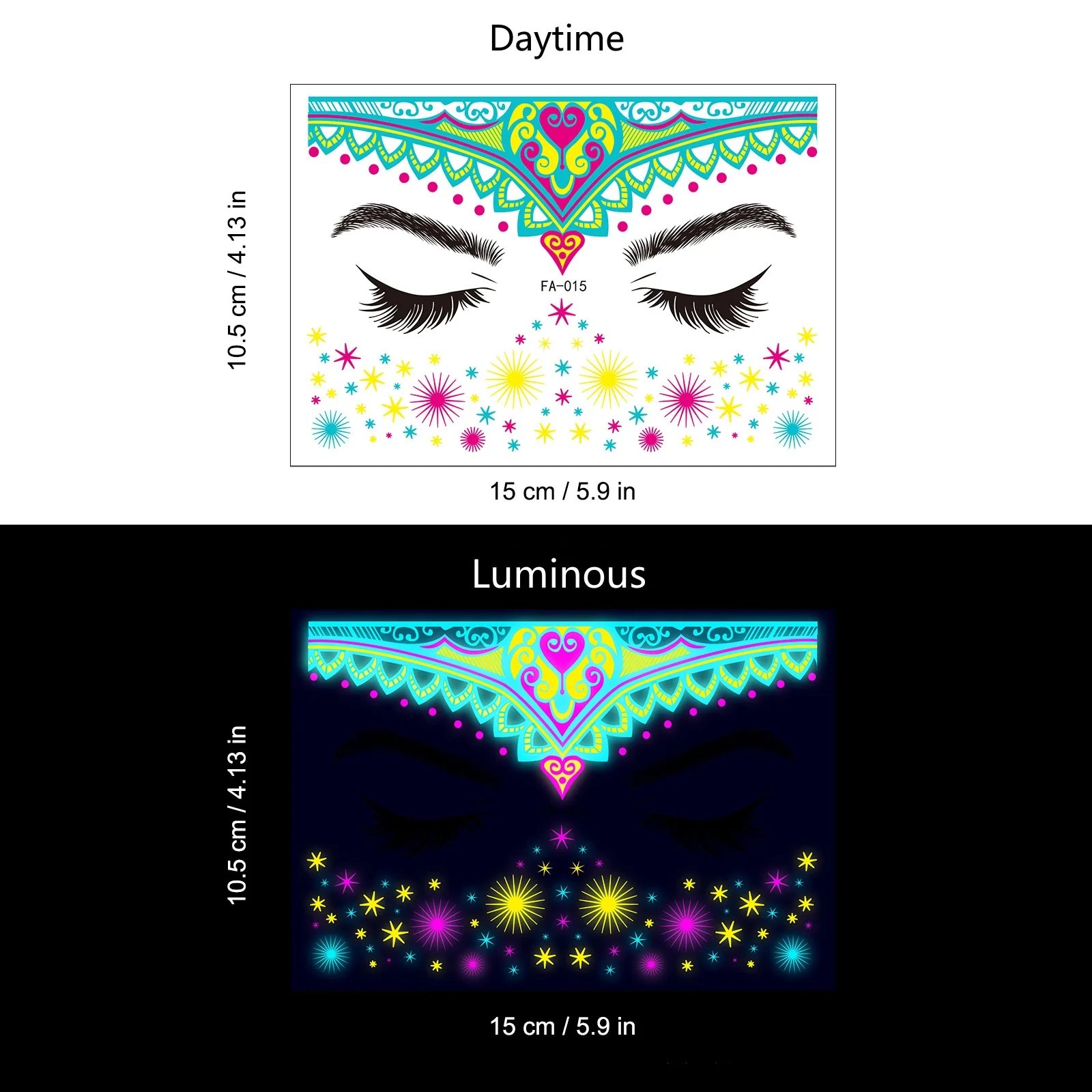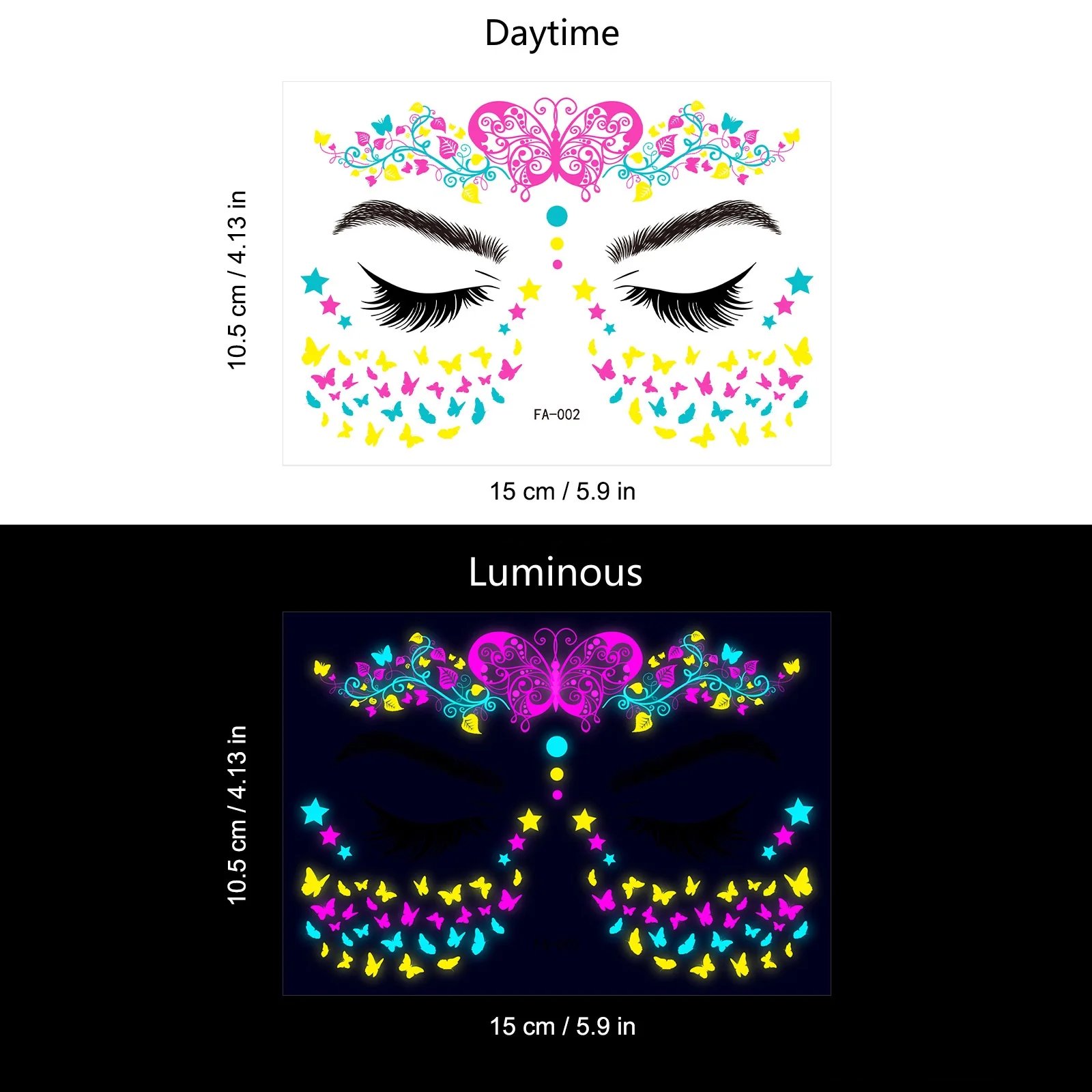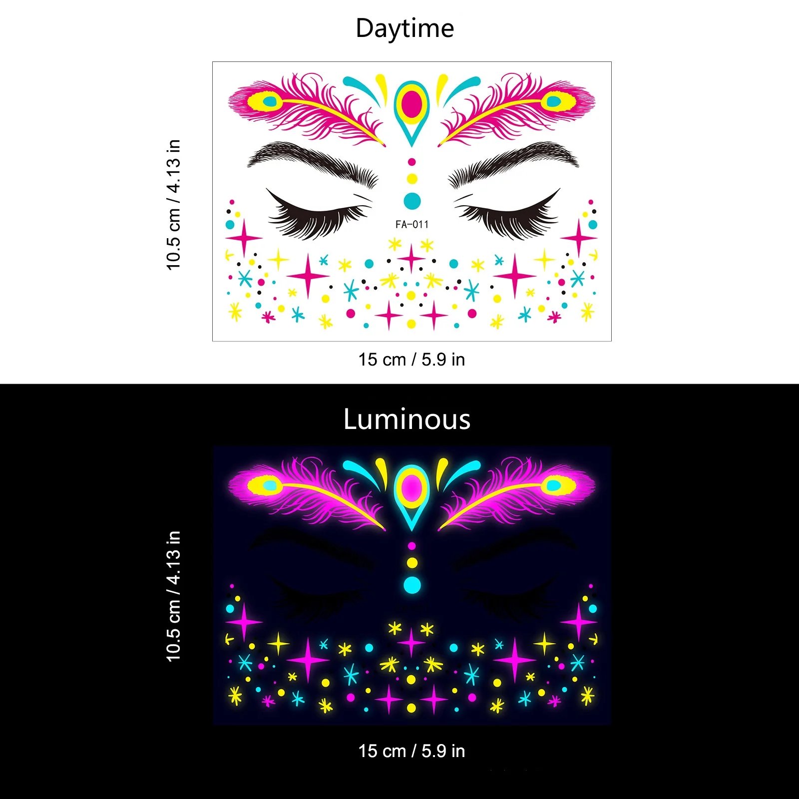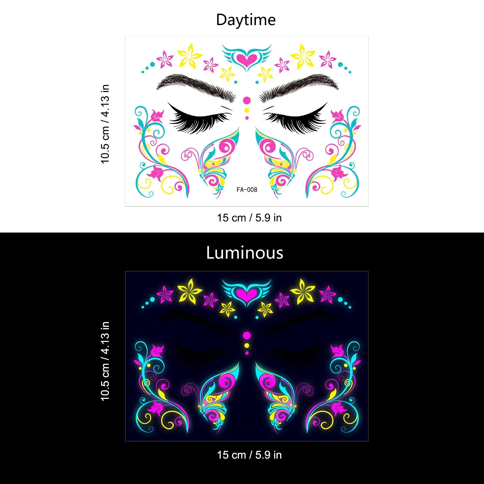 These neon temporary tattoos not only come in bright colours but also glow under UV light. This adds an extra element of fun, face temporary tattoos perfect for music parties, carnivals, Halloween events, bars, clubs, weddings, dances, and other occasions with UV lighting.