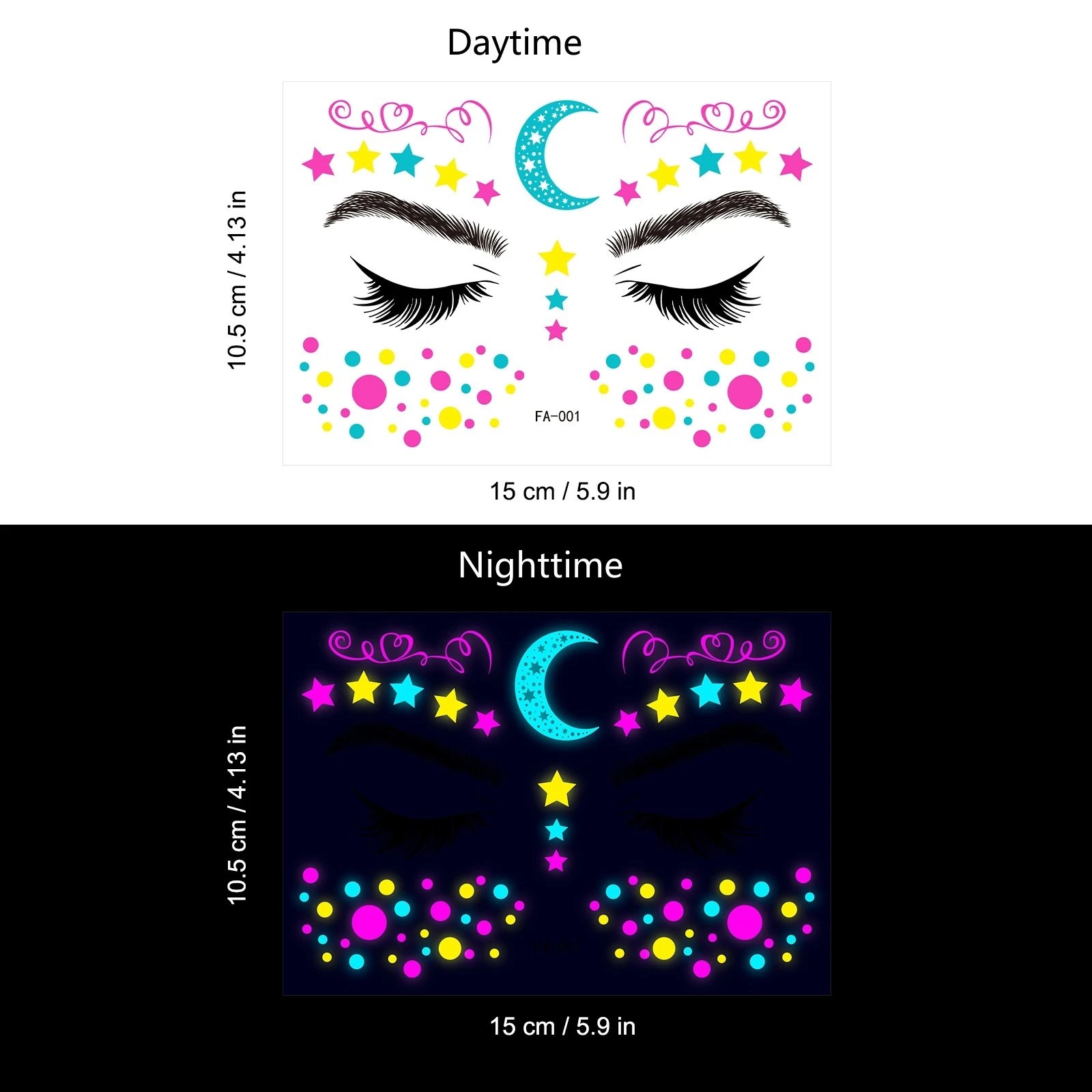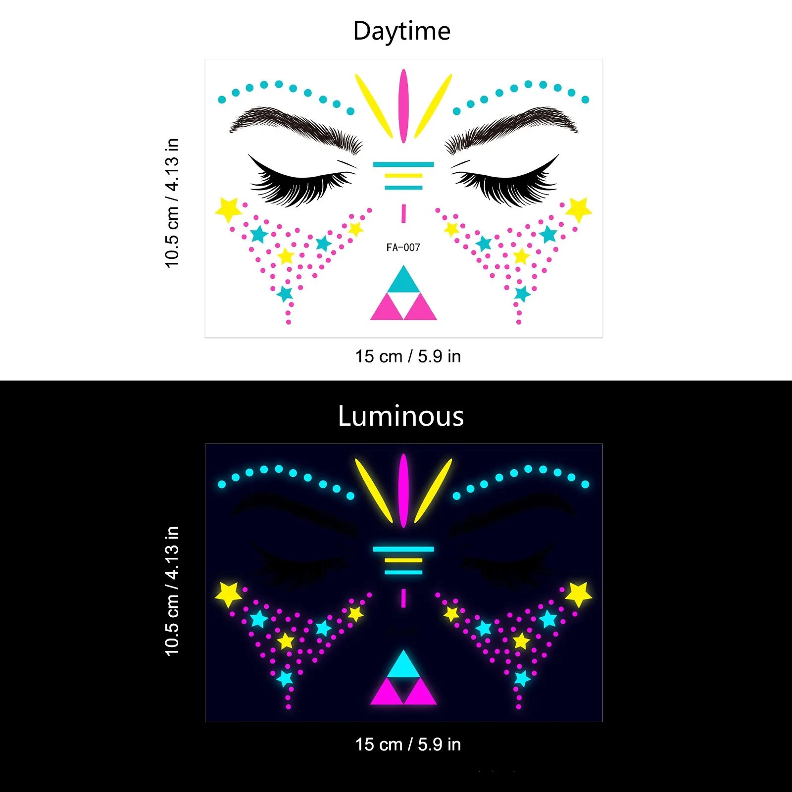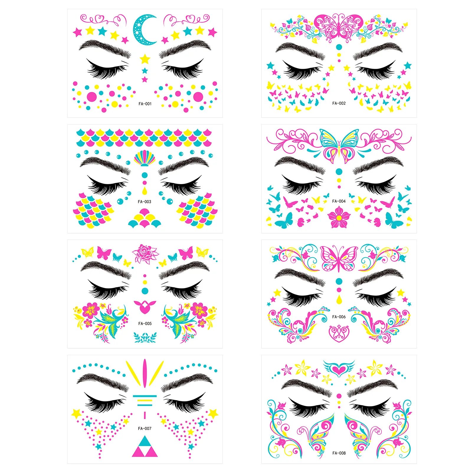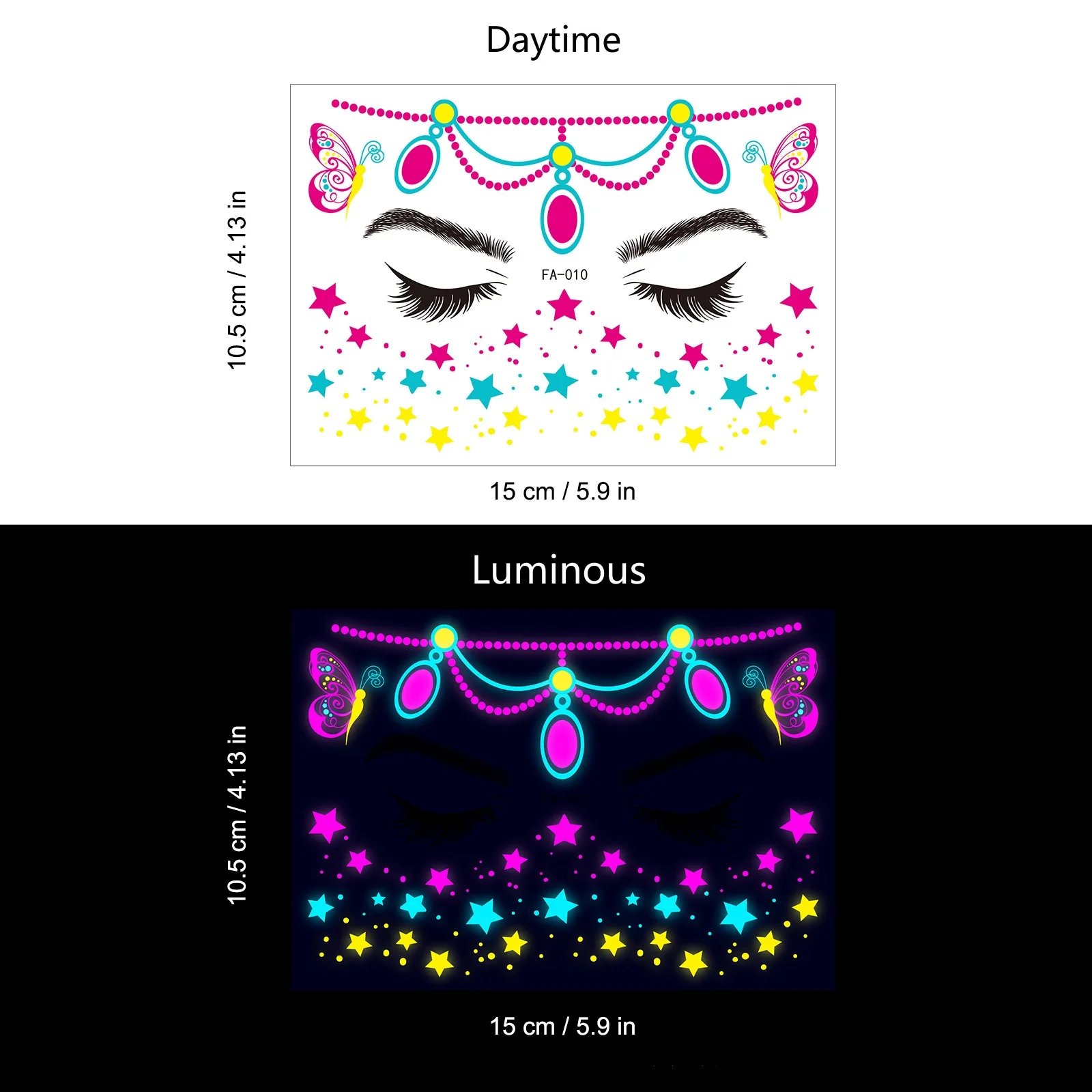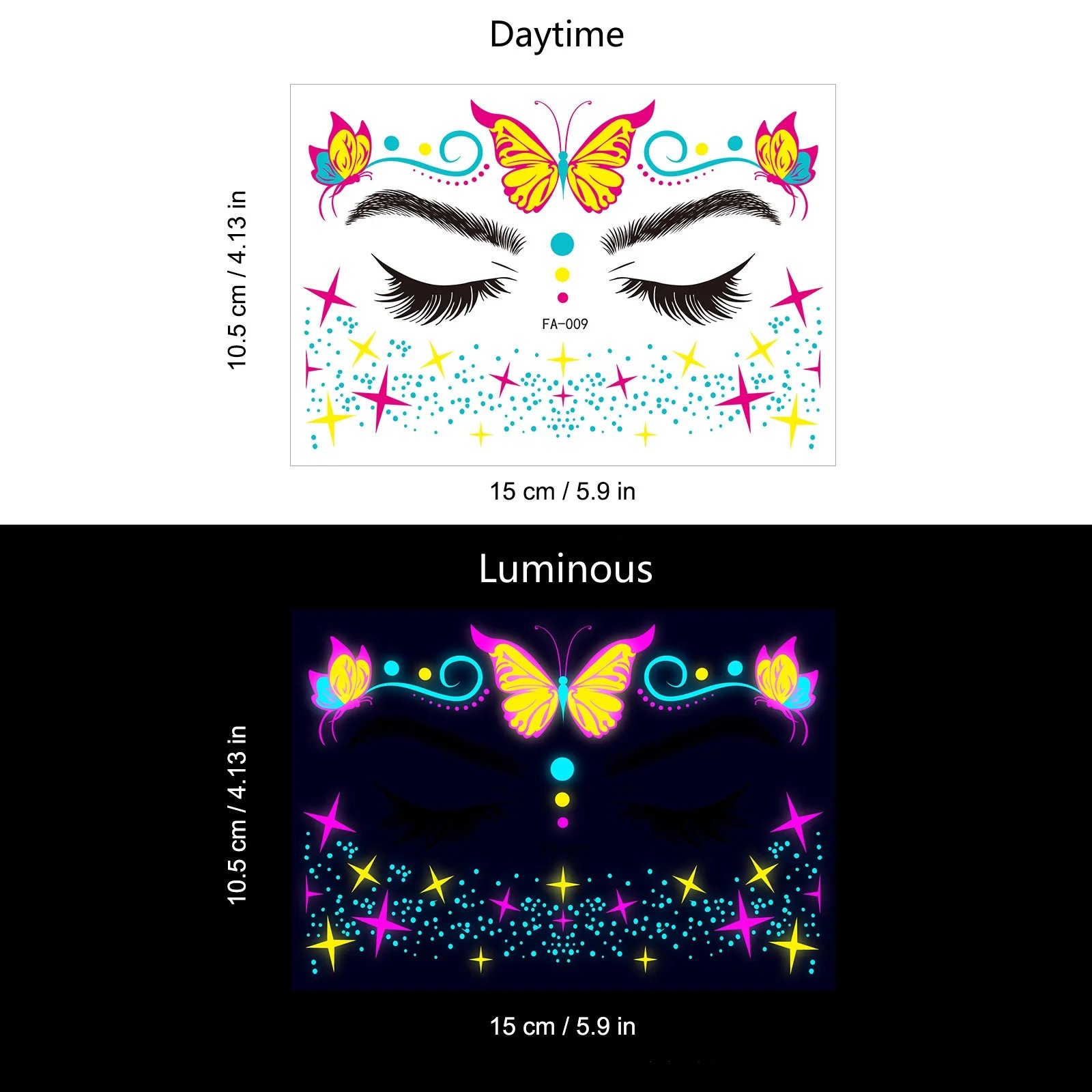 These neon temporary tattoos not only come in bright colours but also glow under UV light. This adds an extra element of fun, face temporary tattoos perfect for music parties, carnivals, Halloween events, bars, clubs, weddings, dances, and other occasions with UV lighting.