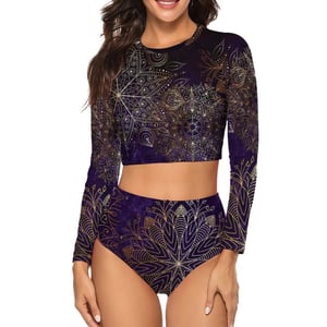 Found Ravers Co on Instagram and thought this bikini set looked sick. The Golden Starburst Mandala print is really eye-catching on the Deep Purple, looks awesome. Only thing is I got a M and the long sleeve tank top felt a bit snug on the arms, probably should’ve sized up to an L. Shipping to the UK took a bit, like 16 days, which was a bummer. Still gonna wear it though.