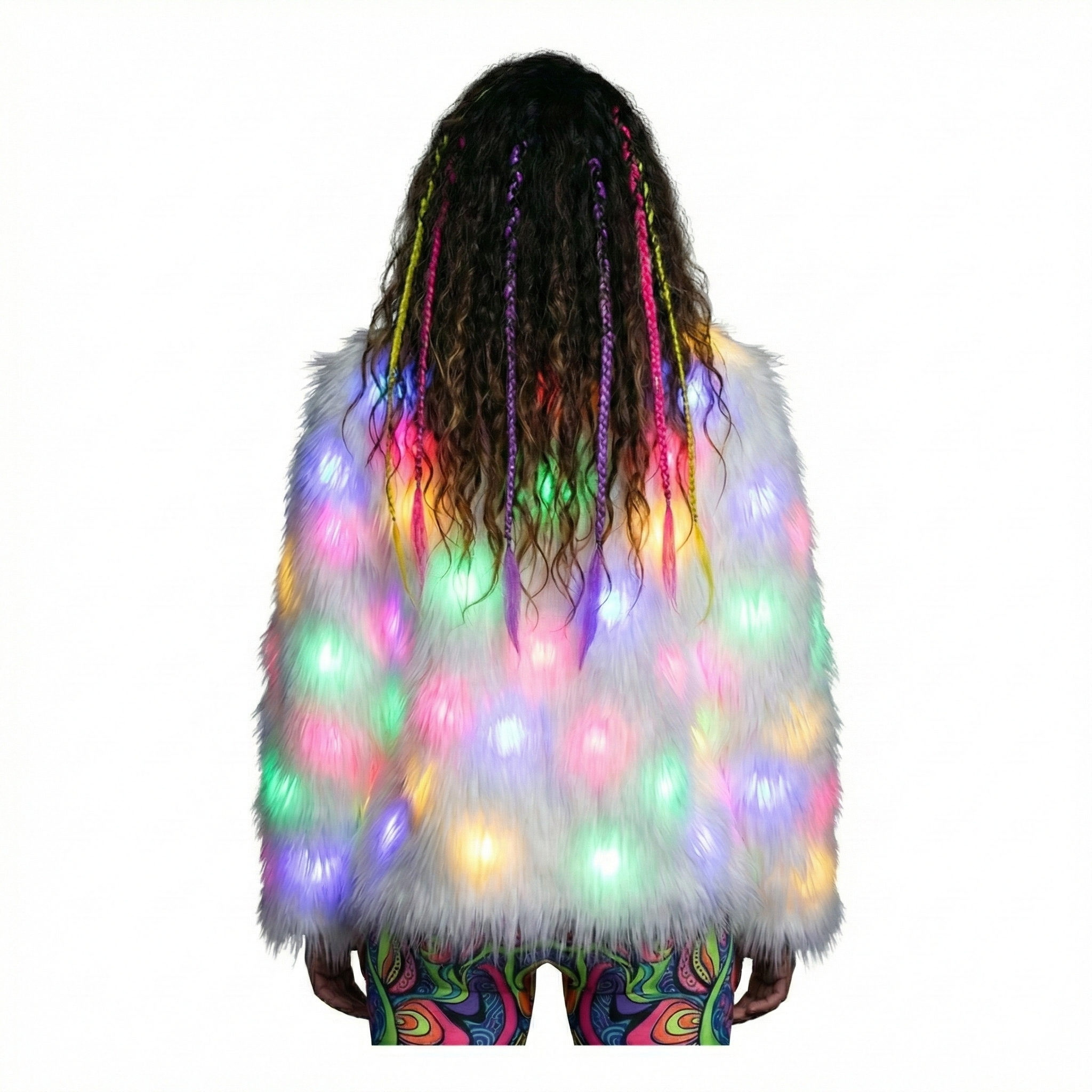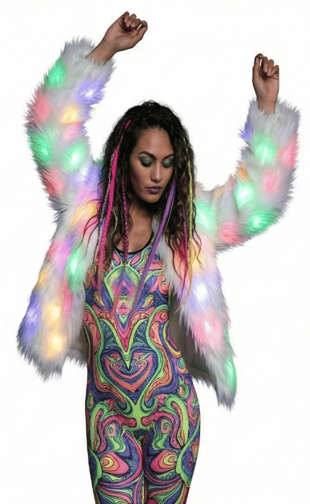 Obsessed with this coat! Saw it on Instagram and had to get one. The ultra-plush faux fur is unbelievably soft and the multi-colour lights are so vibrant. It’s surprisingly comfy for dancing with the regular sleeve style. SO happy with this impulse buy! 💖