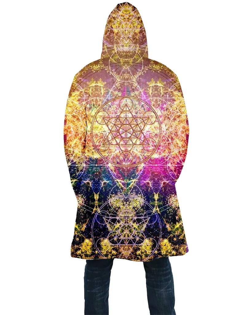 The Metatron Cube Dream Cloak is made and measured by hand, so please allow 1 – 4 cm difference. All the garments we supply are made to the highest standards and should be treated with absolute care! For the Metatron Cube Dream Cloak Hand Wash or Delicate Machine Wash, with cool water and a delicate washing liquid. Air Dry on a coat hanger in a shaded area.