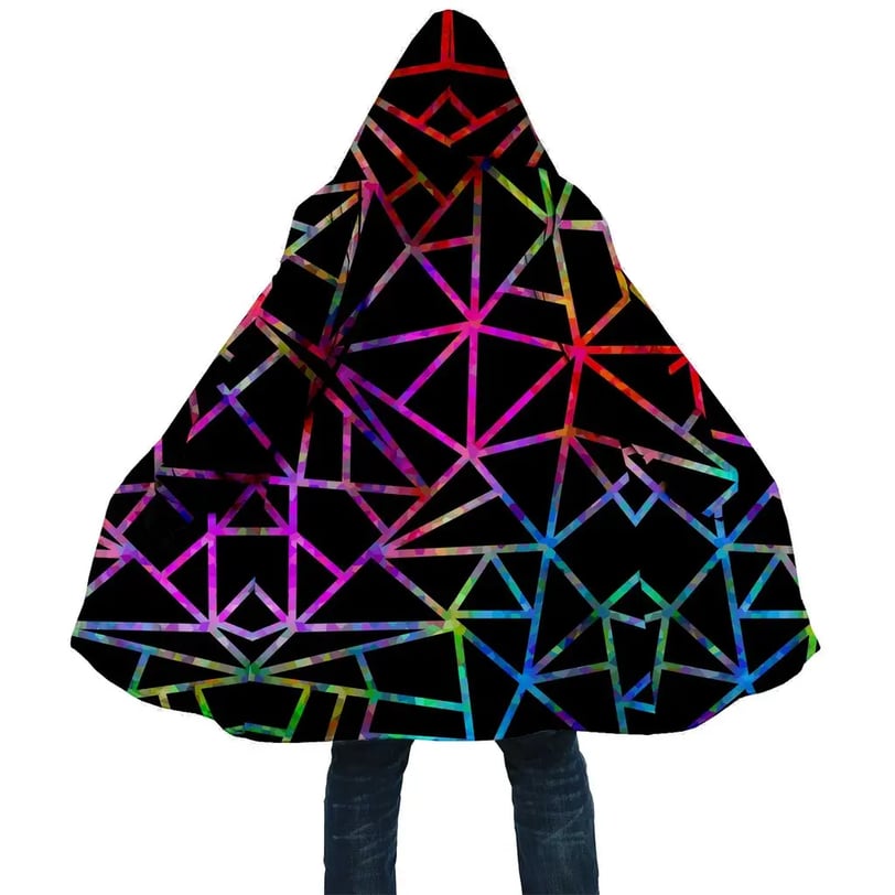 The Neon Lines Dream Cloak is made and measured by hand, so please allow 1 – 4 cm difference. All the garments we supply are made to the highest standards and should be treated with absolute care! For the Neon Lines Dream Cloak Hand Wash or Delicate Machine Wash, with cool water and a delicate washing liquid. Air Dry on a coat hanger in a shaded area.