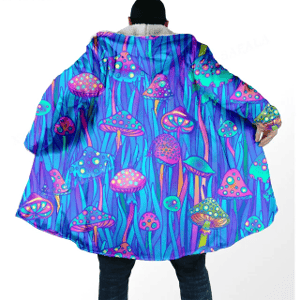 The Psychedelic Blue Mushroom Cloak is made from high quality Polyester and soft Berber Fleece. It features a mushroom inspired digital print and is available in size S - 5XL