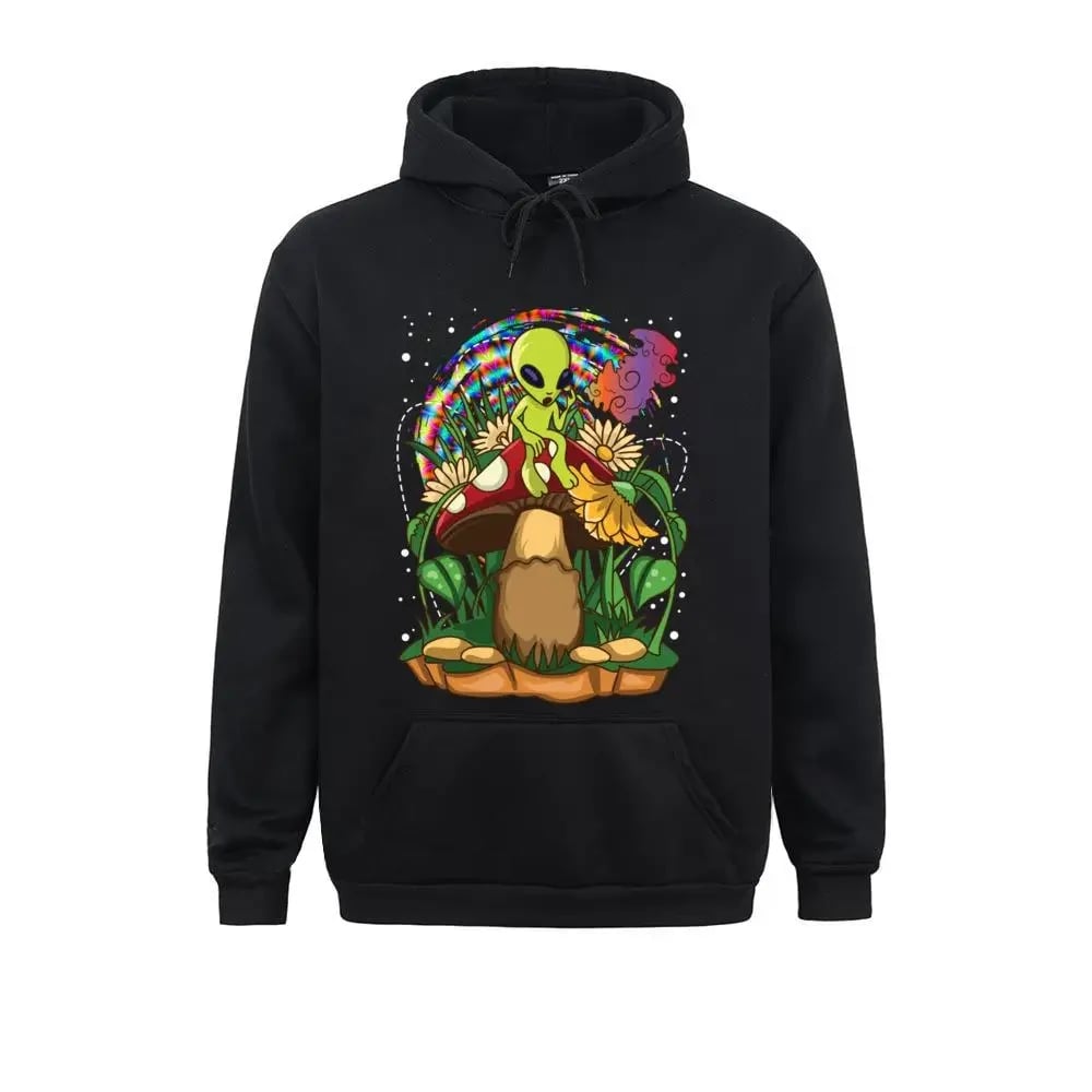 Embrace the festival spirit with our Psychedelic Mushroom Alien Hoodie and let the rhythm of the rave ignite your soul.