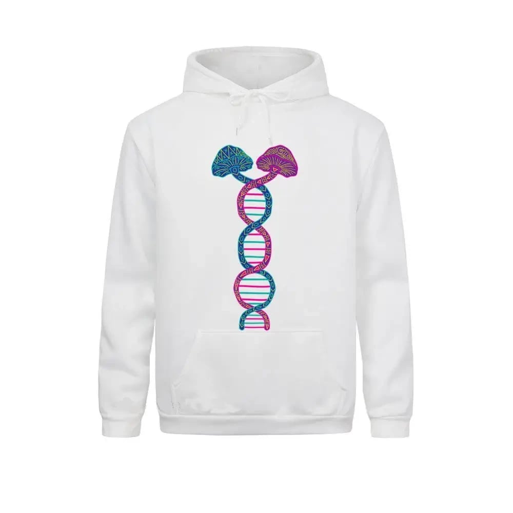 Boogie into a universe where fashion transcends the norm and becomes an adventure into a new reality! Our Psychedelic Mushroom DNA Hoodie isn’t just a hoodie; it’s a canvas that weaves stories of wild nights, unforgettable memories, and the mystifying dance of nature and science.