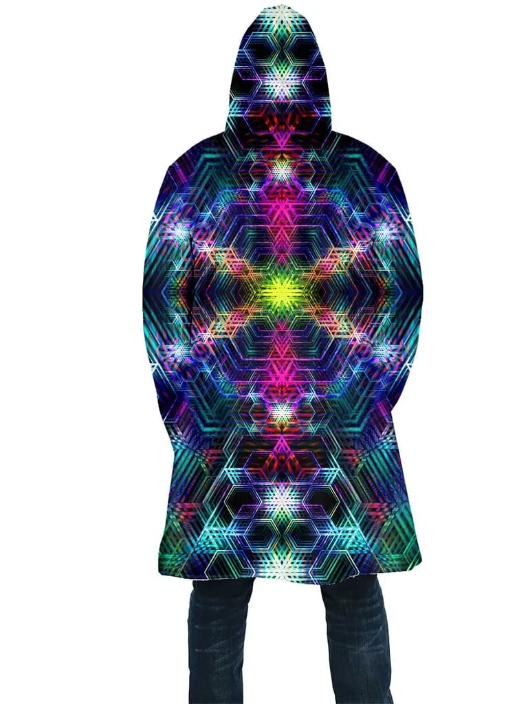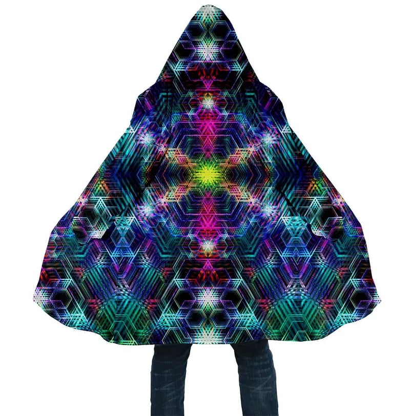 The Psychedelic Web Dream Cloak is made and measured by hand, so please allow 1 – 4 cm difference. All the garments we supply are made to the highest standards and should be treated with absolute care! For the Psychedelic Web Dream Cloak Hand Wash or Delicate Machine Wash, with cool water and a delicate washing liquid. Air Dry on a coat hanger in a shaded area.