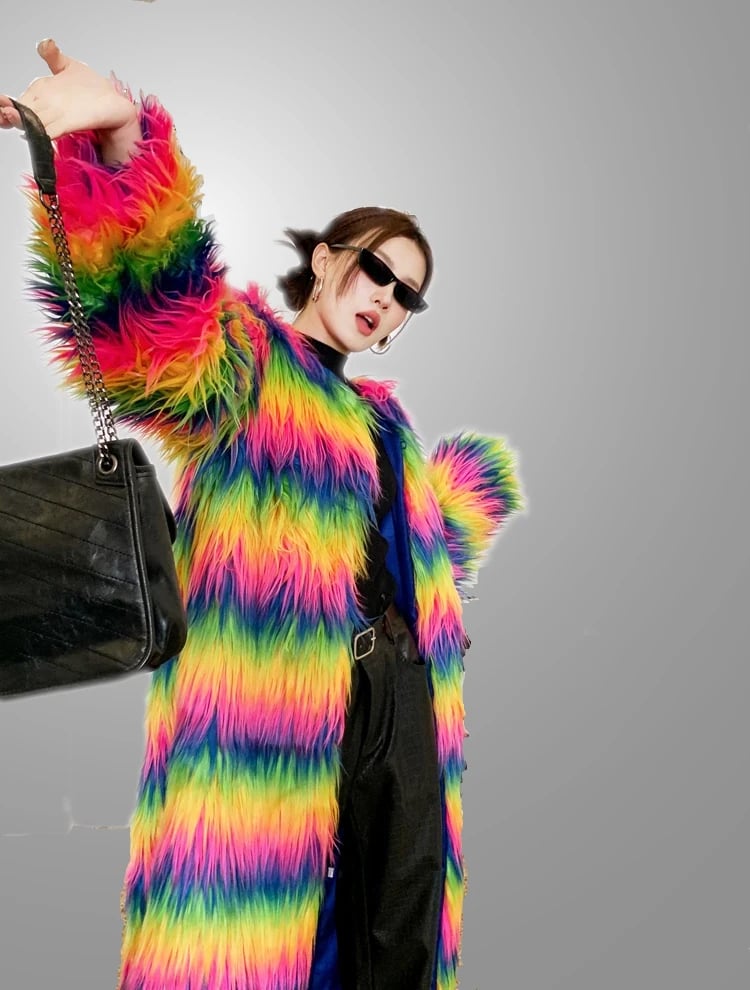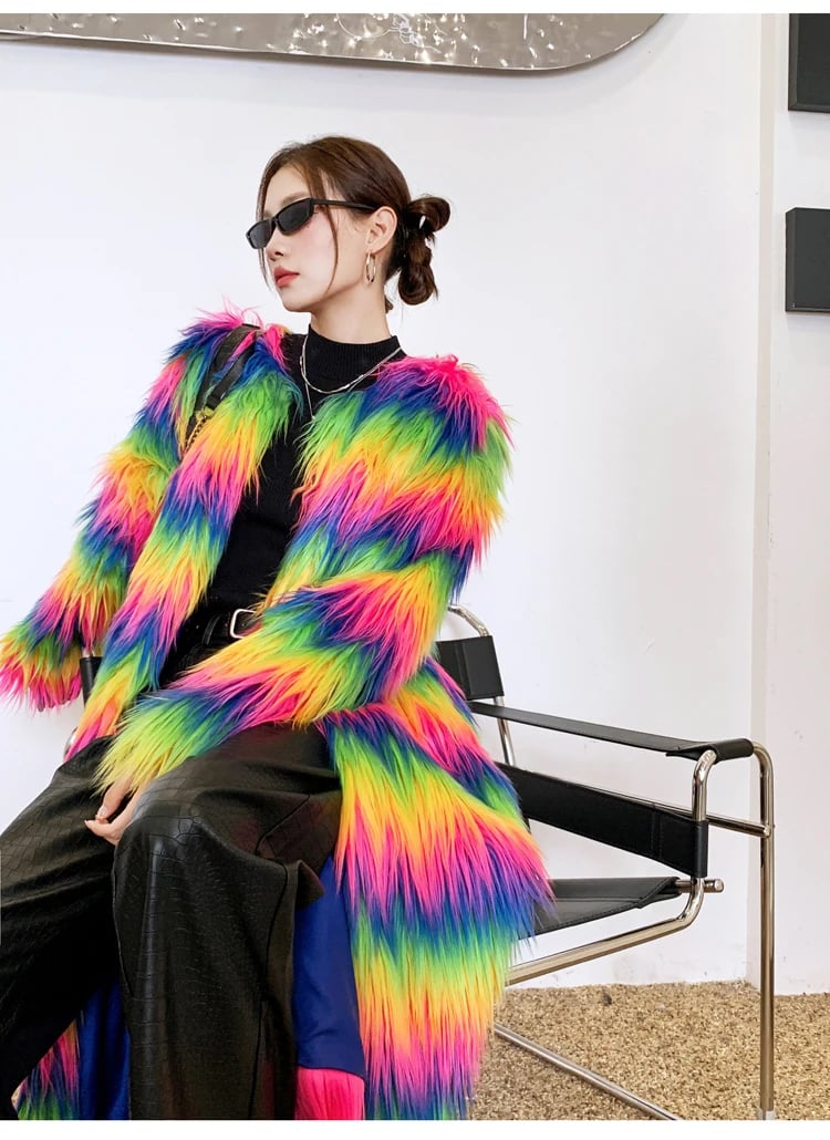 Absolute impulse buy and ZERO regrets! This Neon Rainbow Furry Coat is everything. The Faux Fur is so fluffy and bright, it just makes me happy.