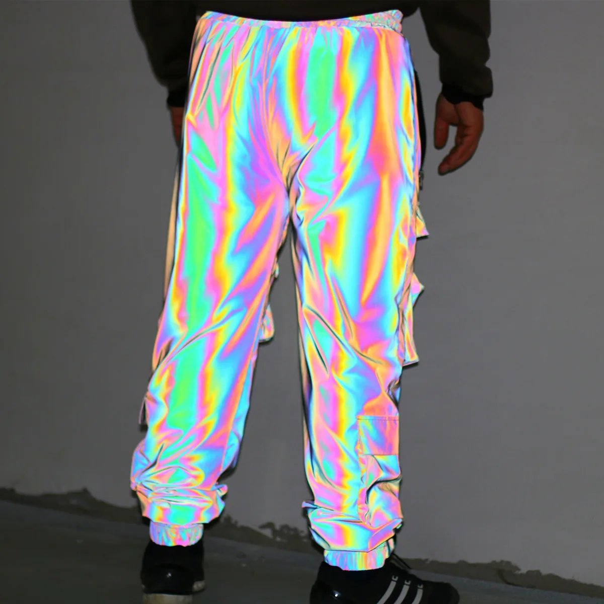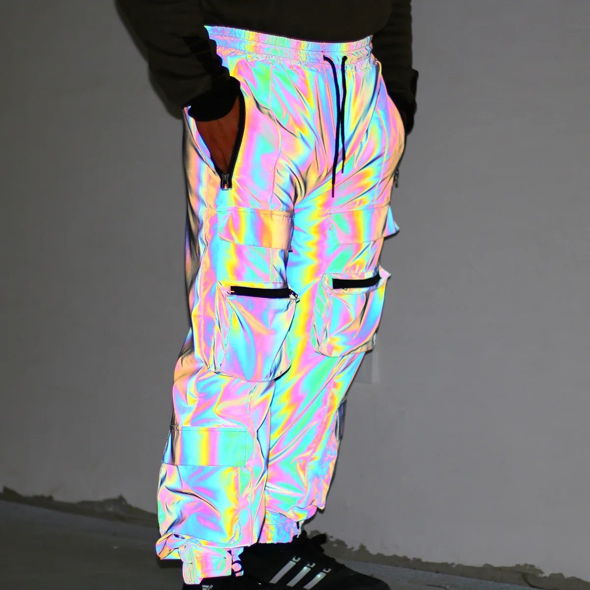 Finally pulled the trigger on these reflective cargos! Wore them to a club night straight out of the box. They are SO comfy, definitely designed with movement in mind. The dark grey really does reflect light well, making you pop. Shipping to Aus was pretty quick, got here in about 7 days.