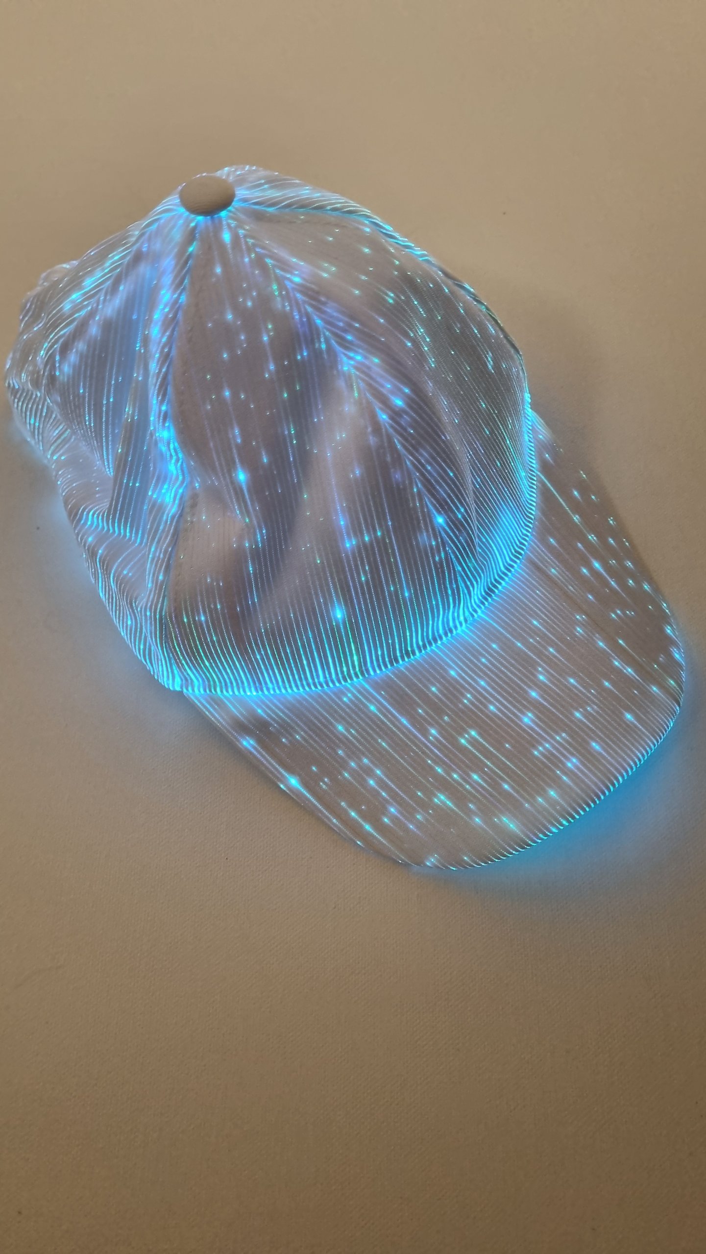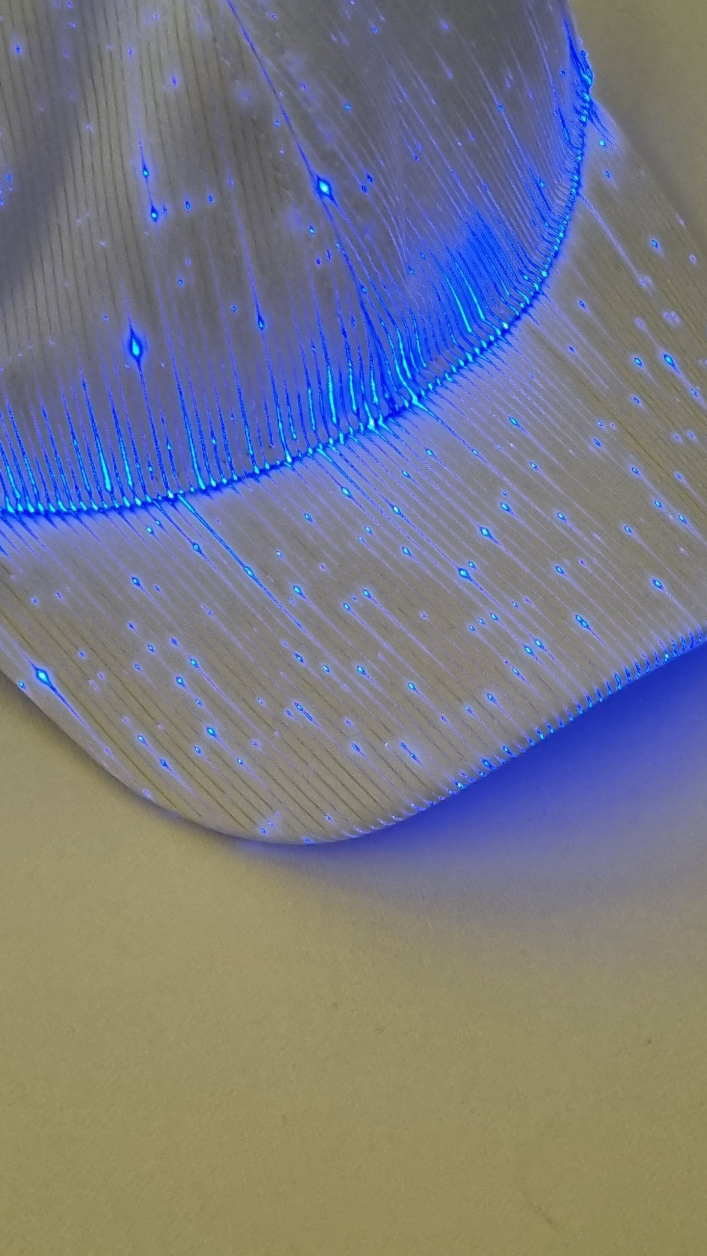 Please Reach Out if you have any questions about the White Fibre Optic Cap or the amazing technology behind Fibre Optic Fabric. Most of our Fibre Optic Clothing can be custom made and we are always keen to collaborate!